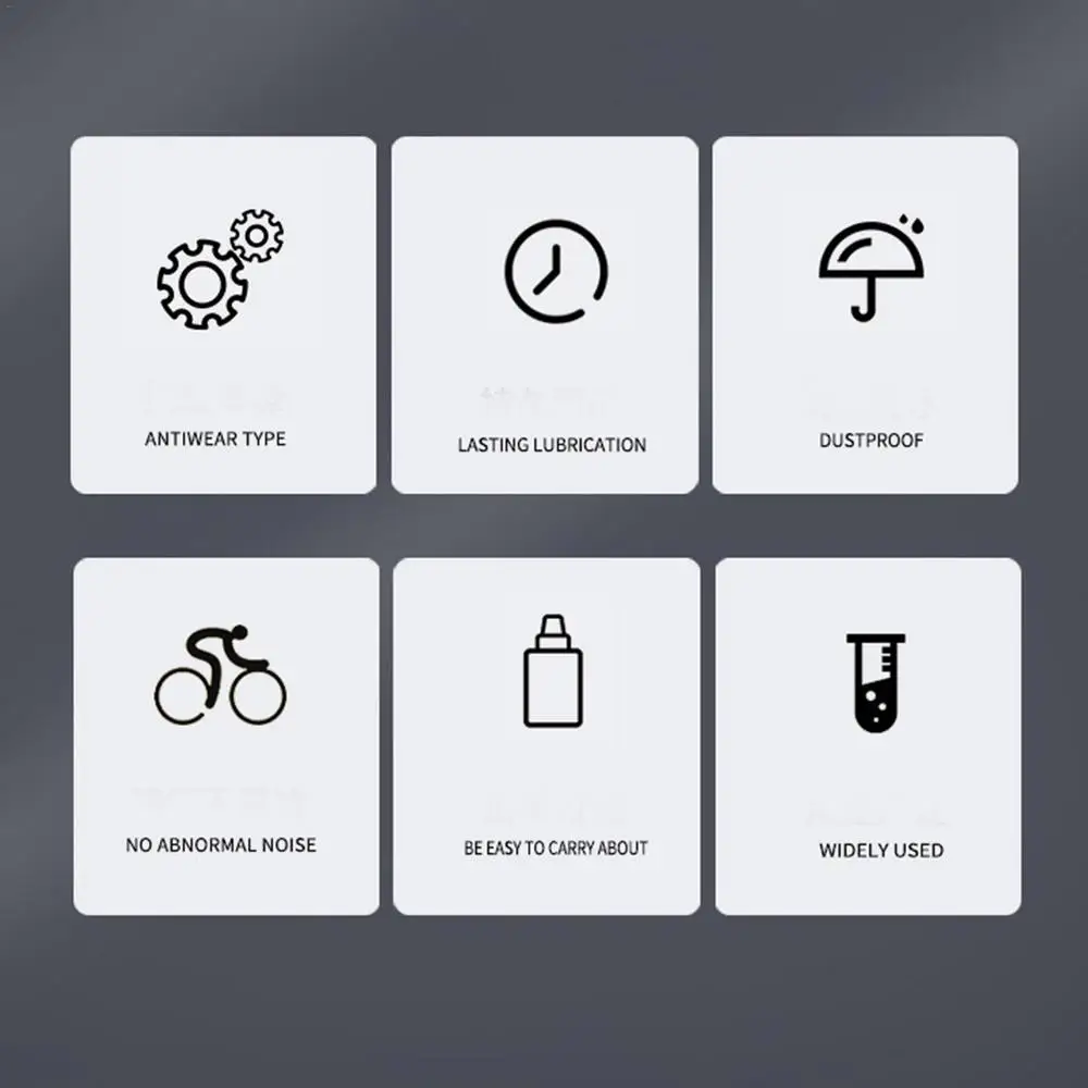1.Excellent Lubrication: Boost your bike’s performance with our Bike Chain Lube. Its first-rate lubrication ensures smoother pedaling, reducing friction, noise, and dirt. Enjoy an easy ride with superior wear protection.