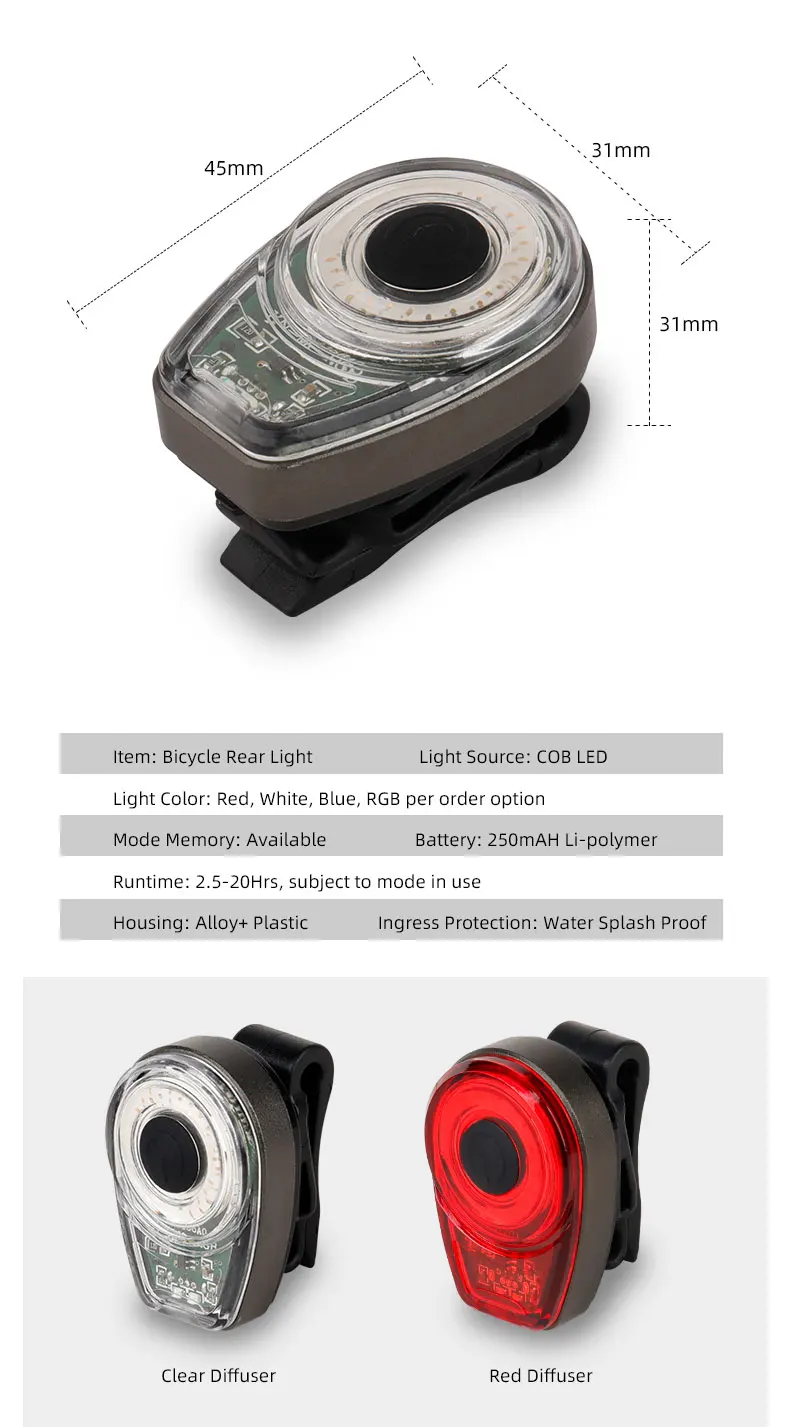 Bicycle Tail Light Bike Lamp Specifications: