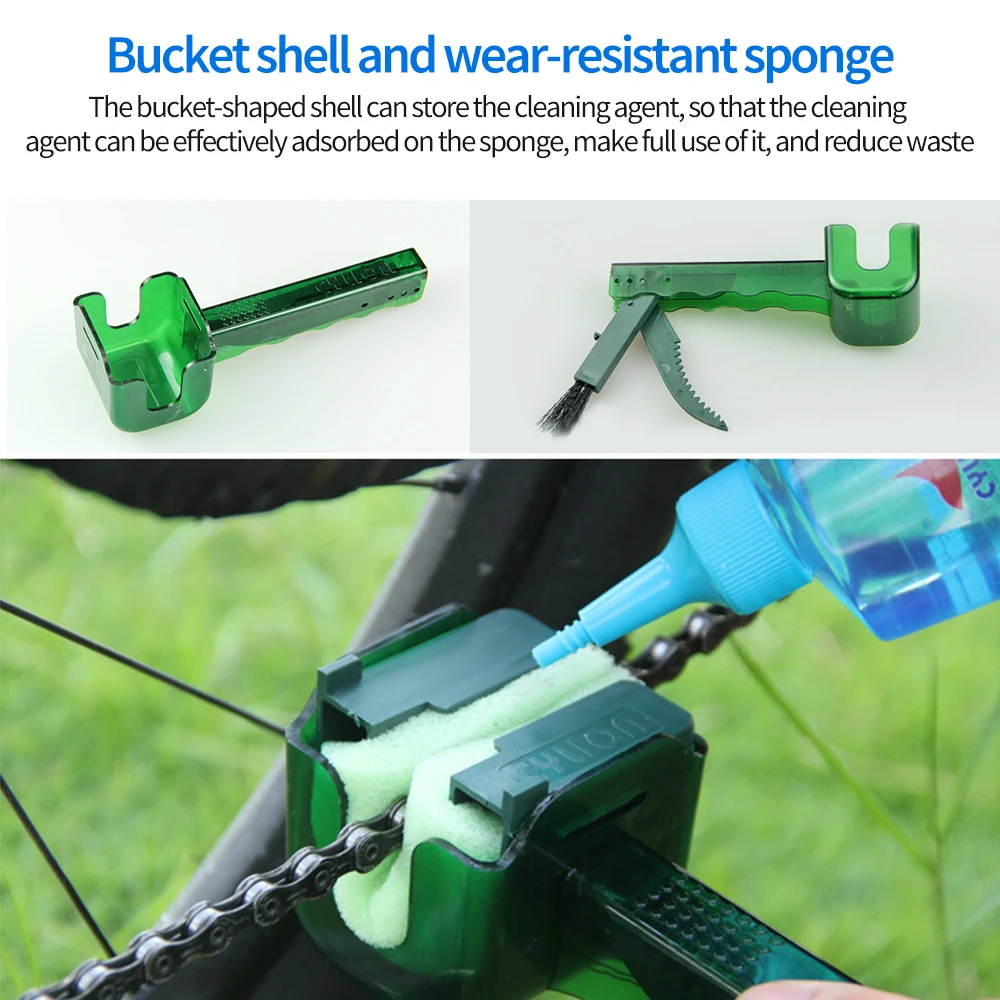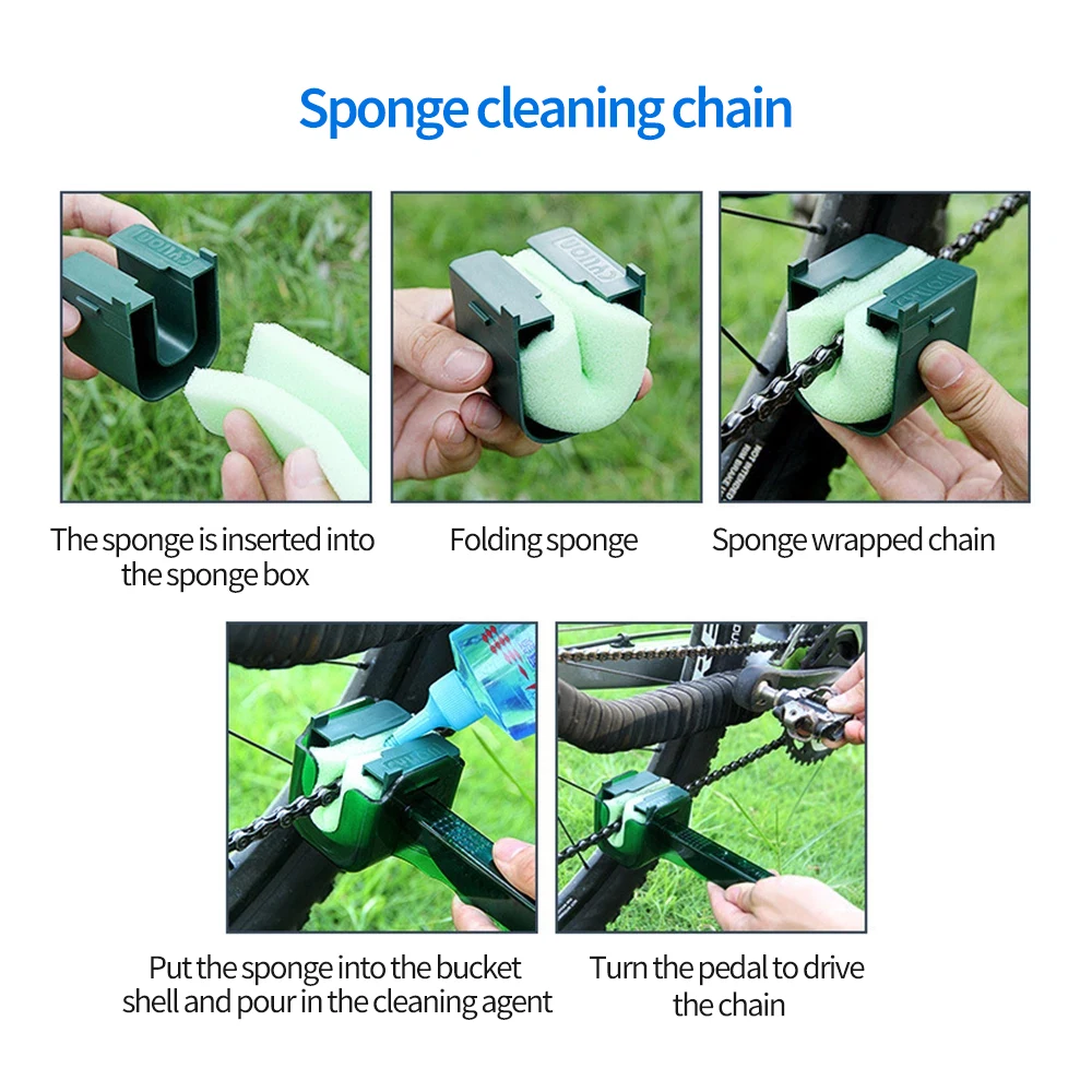 The detergent can be easily adsorbed on the sponge, which can not only reduce the use of detergent but also dry the chain and the bicycle