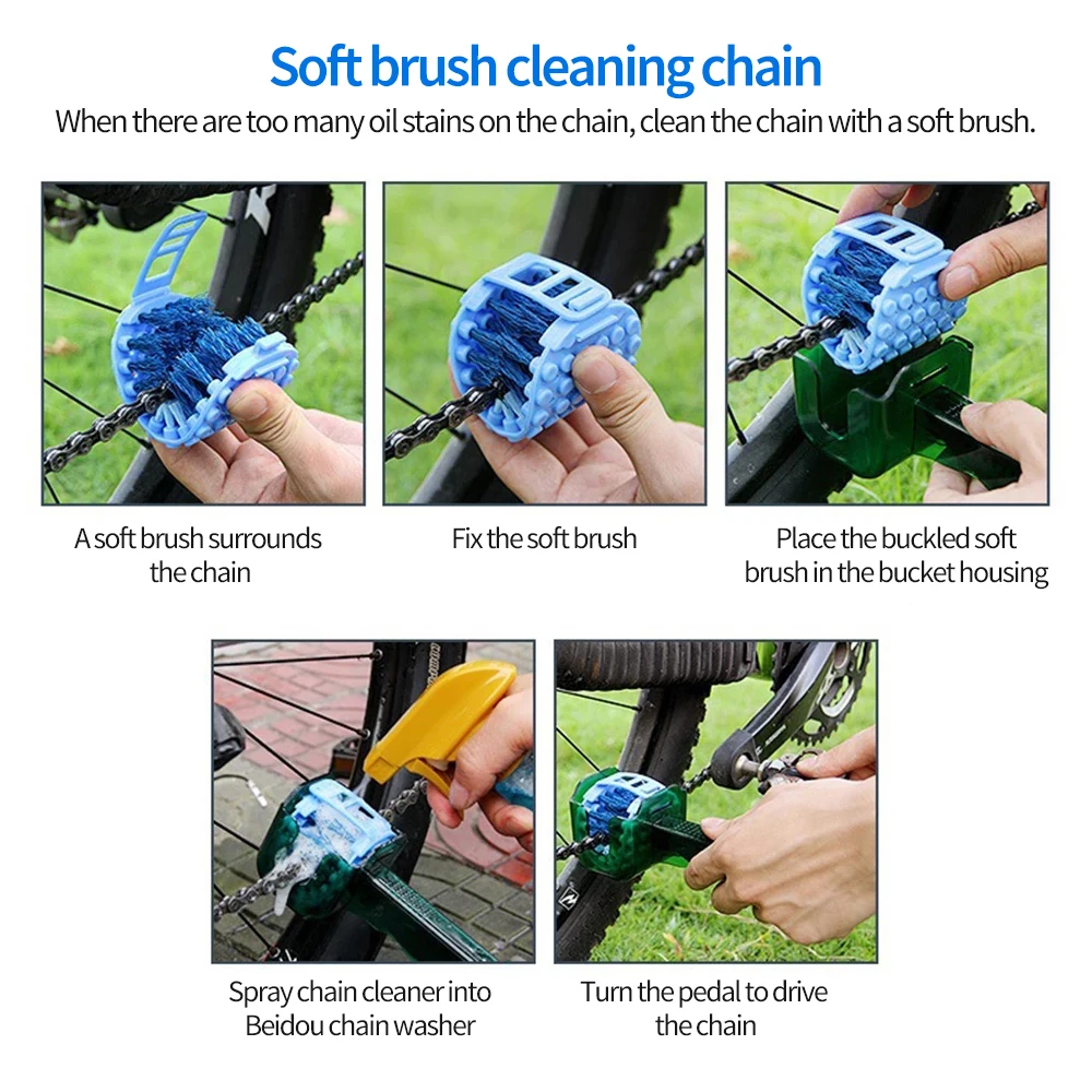 The chain cleaner set helps prevent premature wear of your drivetrain and helps maintain smooth operation when riding