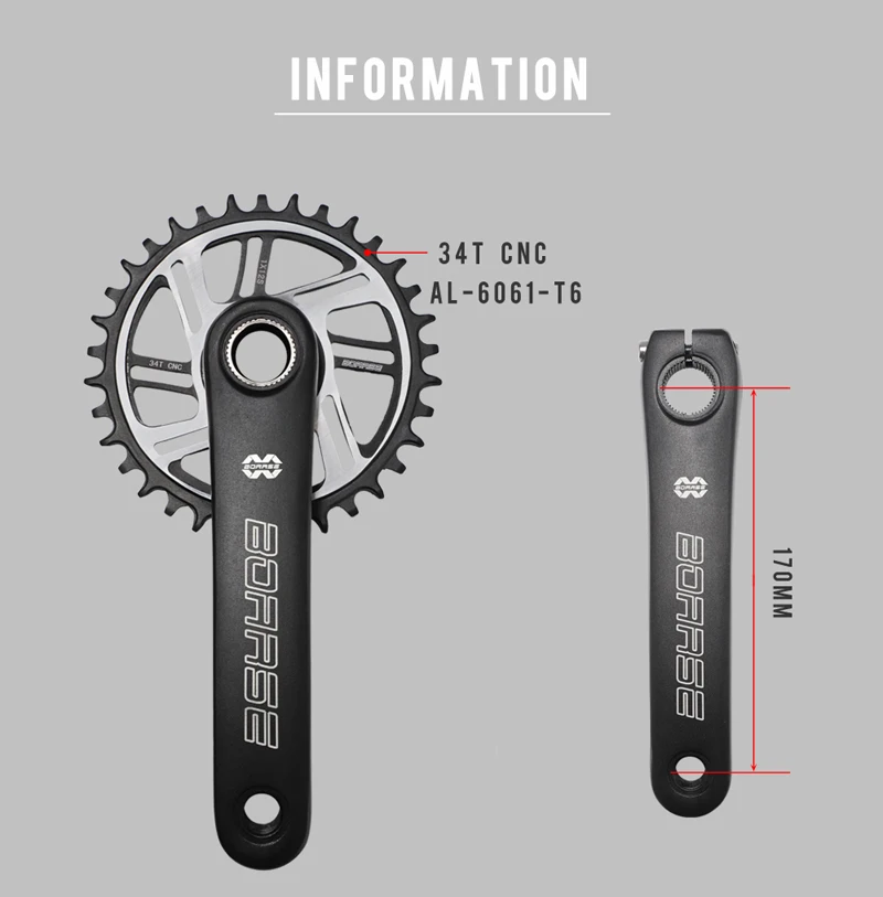 BOARSE Mountain Bike Crankset 34T Chainwheel Aluminum Alloy