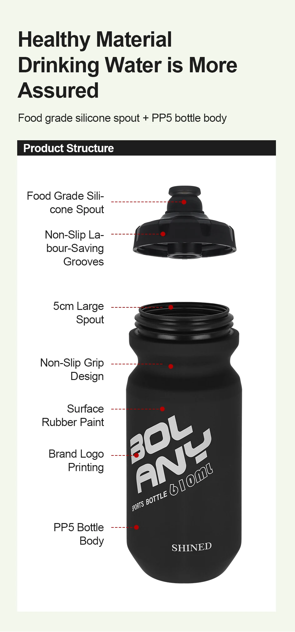 BOLANY 610ML Sports Bottle Rubber Paint Plastic Bicycle Water Bottle