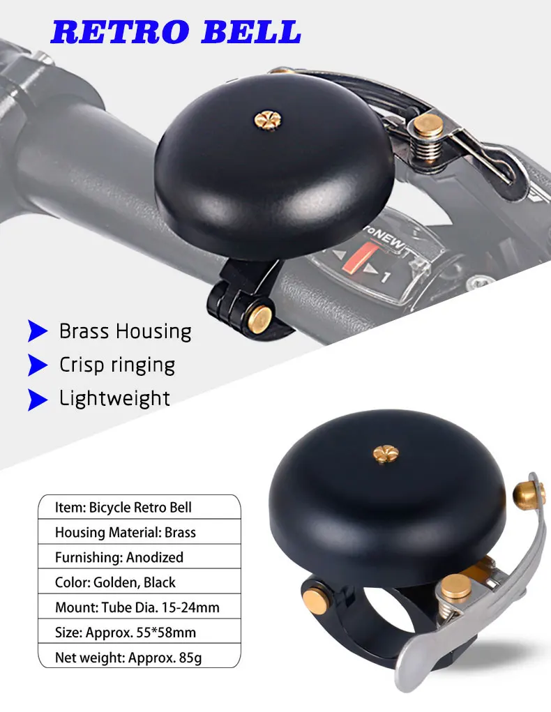 Deemount Bicycle Brass Ring 55mm Retro Anodized Bell Cycling Audio Warning Crisp Sound MTB Road Bike Bell Left Right Hand 85g