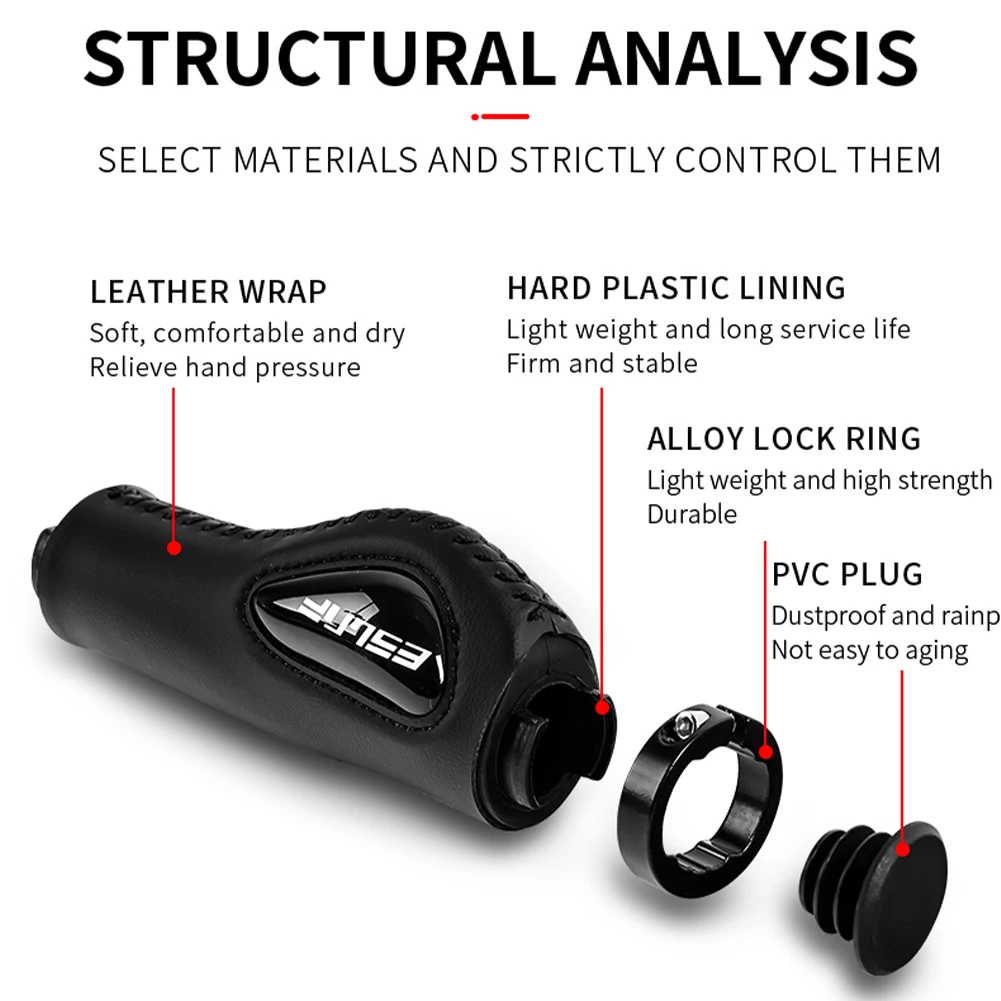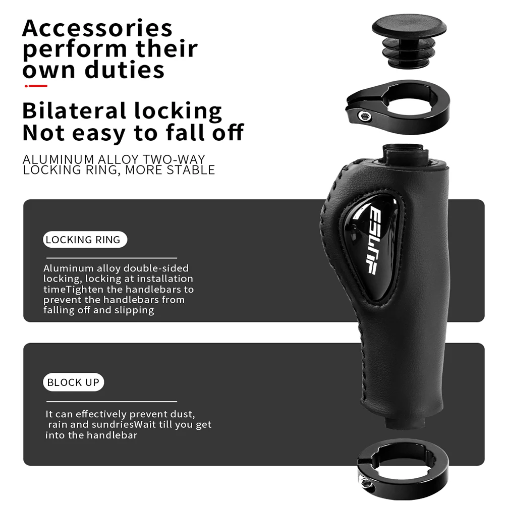 ![]() ![]() ![]() ![]() ![]() ![]() ![]() ![]() ![]() | Leather Bicycle Grips Bilateral Locking Shock-Absorbing Wear-resistant Non-slip Cozy Handlebar Grips Bike Handlebar AccessoriesFeatures: *1. Aluminum alloy two-way locking ring, which can lock the handlebar, the handlebar grip is not easy to fall off and slip, more stable. *2. Ergonomic design, silicone shock absorption, comfortable grip and easier riding. *3. Liquid silicone anti-slip shock absorption, effectively relieving the feeling of numbness and discomfort of palms caused by long-term riding. *4. It is suitable for bicycle handlebars with a diameter of 2.22CM, which is highly versatile and suitable for most handlebars. Description: *1. Material: leather+silicone+aluminum alloy *2. Technology: injection molding+hand sewing *3. Color: black, brown, red, sapphire blue, dark green *4. Size: 13*2.22cm *5. Weight: about 212g Package Content: 2x Handlebar Grips Note: 1. All pictures are professionally color-coded, but due to the difference of ambient light and display device settings, there may be some deviations between the pictures you see and the items themselves. Please understand. 2. The data is measured manually, and there may be some deviation, but it will not affect the use.![]() ![]() ![]() ![]() ![]() ![]() ![]() ![]() ![]() ![]() ![]() ![]() ![]() ![]() ![]() ![]() ![]() ![]() ![]() | ||||||||||||||||||||||||||