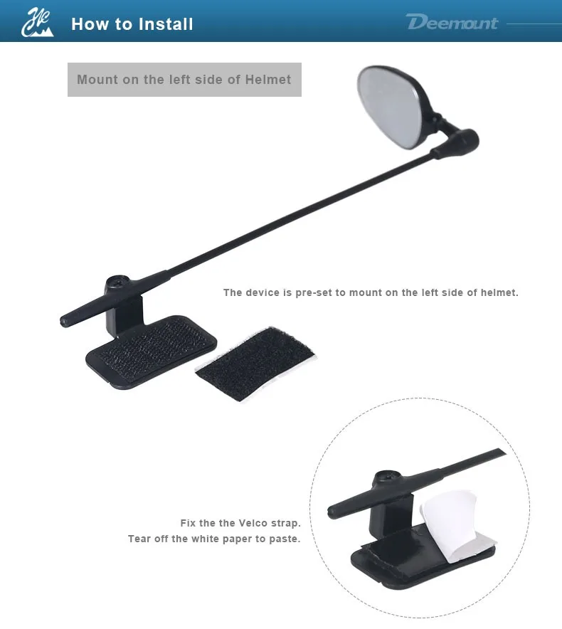 · May mount on the right or left side of helmet;