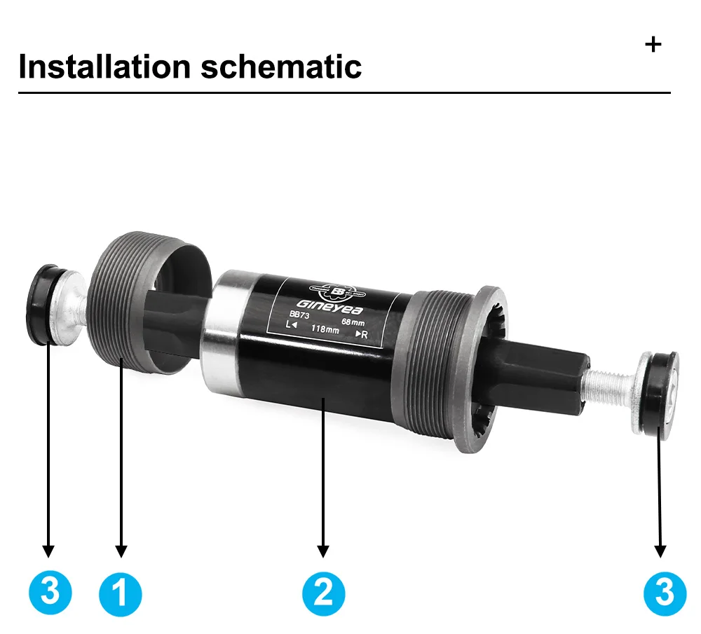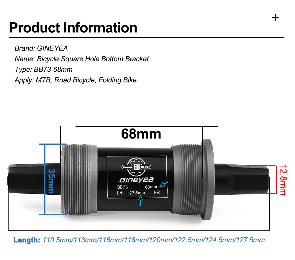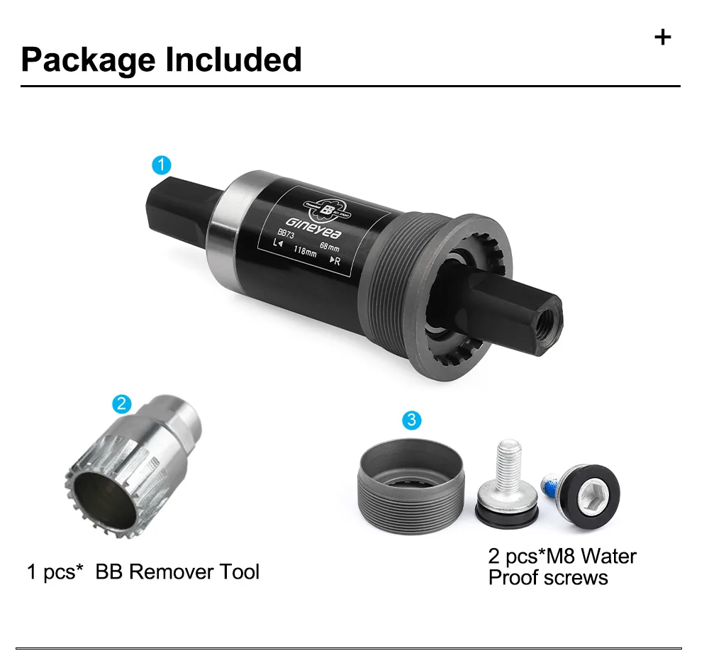 Gineyea BB73-68 113mm Mountain Bike Square Hole Integrated Sealed Bottom Bracket
