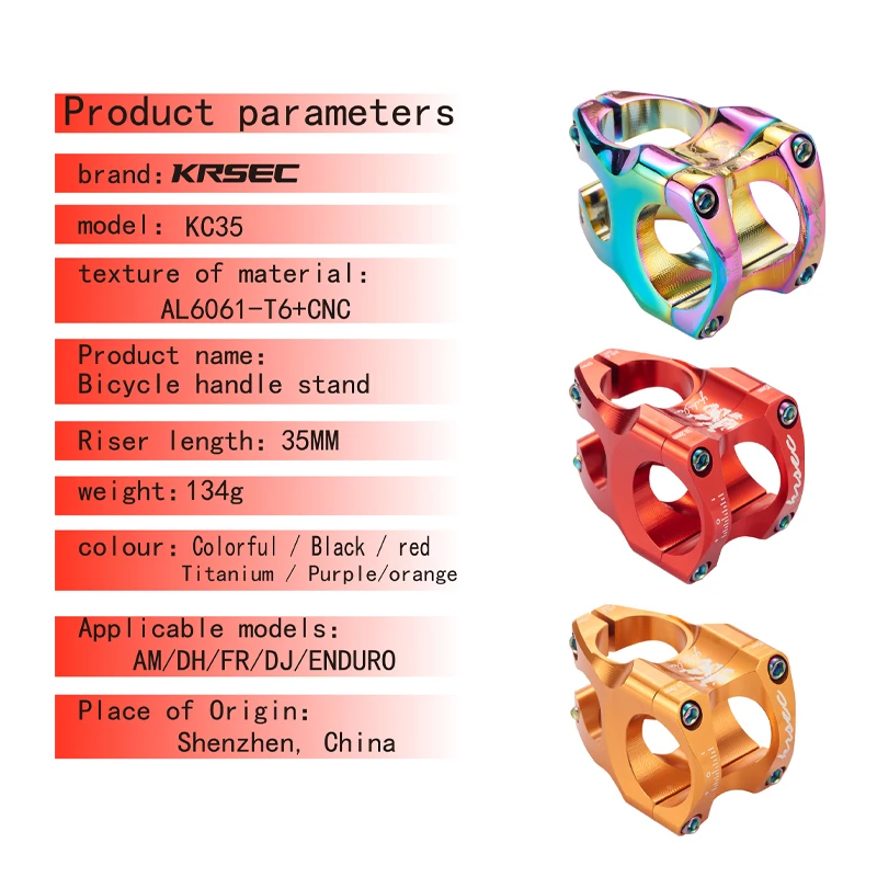 KRSEC KC35 Bike Handlebar Stem Mtb Mountain Bike 35mm Short Stem
