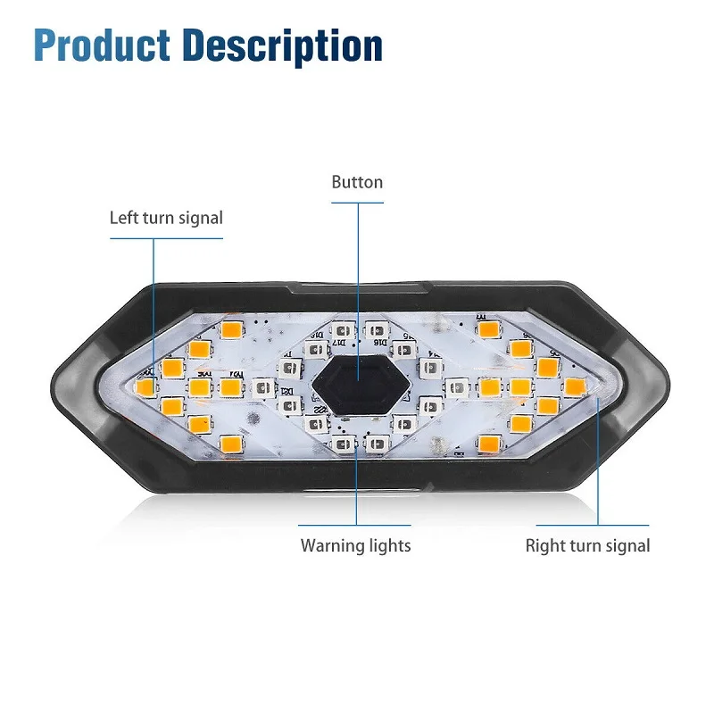 Five Light Modes: Red Light–Flashing red light–Left turn signal–Right turn signal–All flashing
