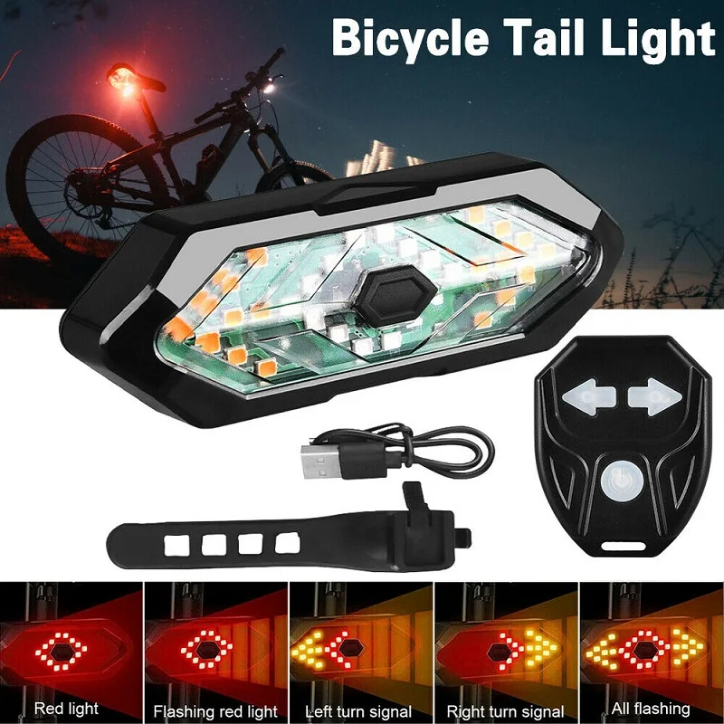 LED Bicycle Tail Light Turn Signal Light USB Rechargeable Remote Control Features: