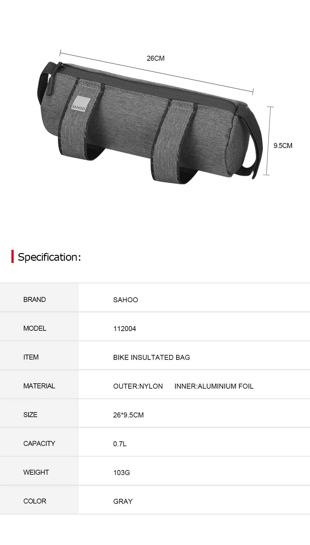 Sahoo Bicycle Top Tube Bag Frame Insulated Water Bottle Bag 112004