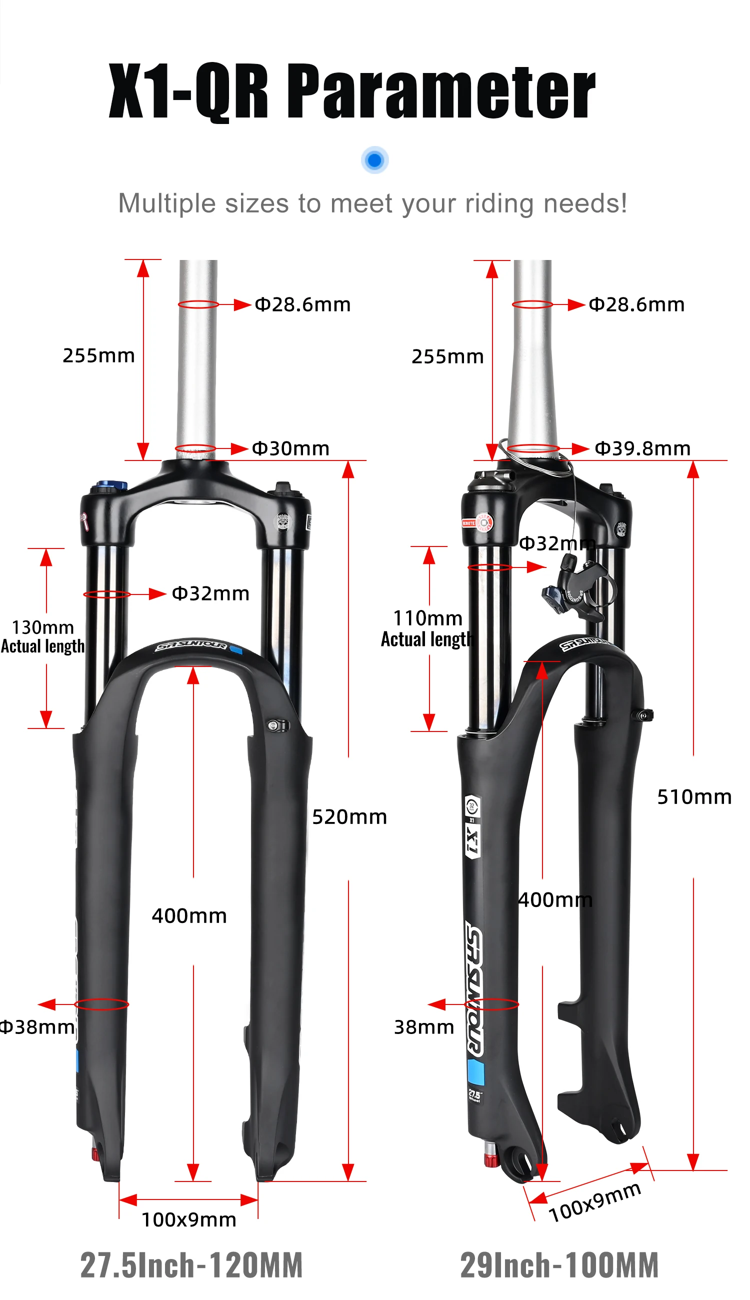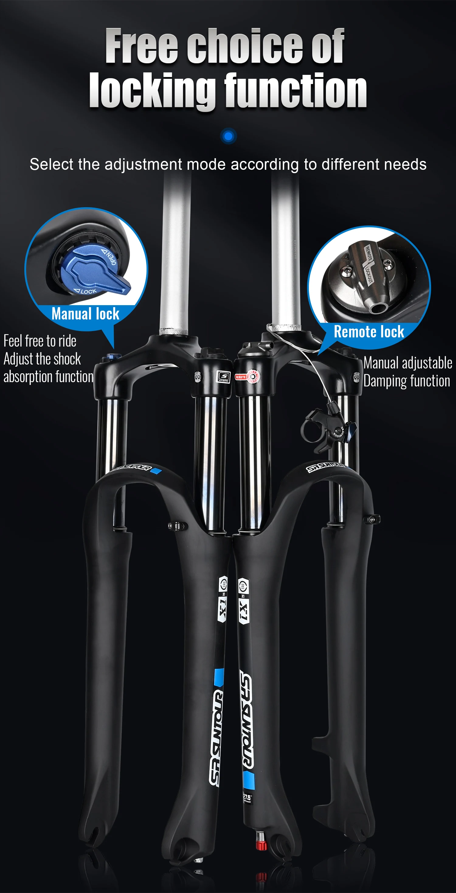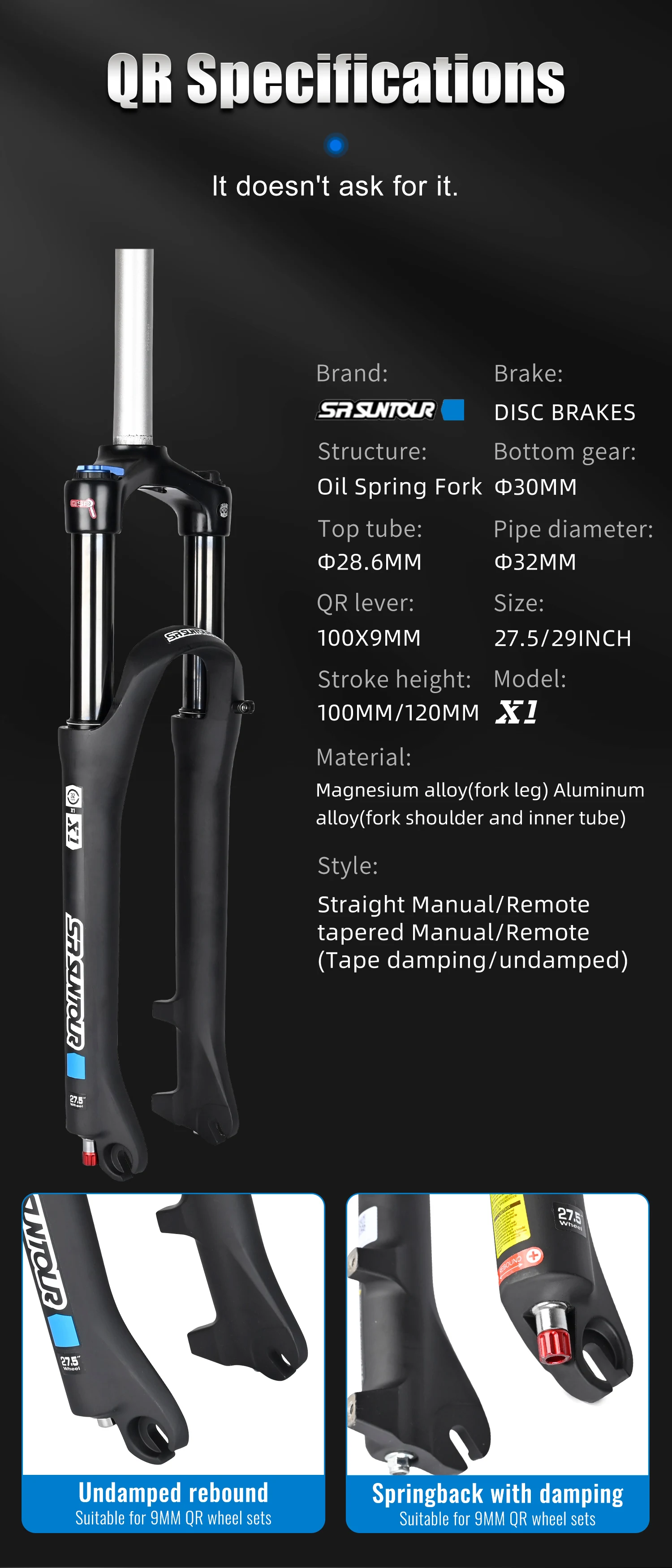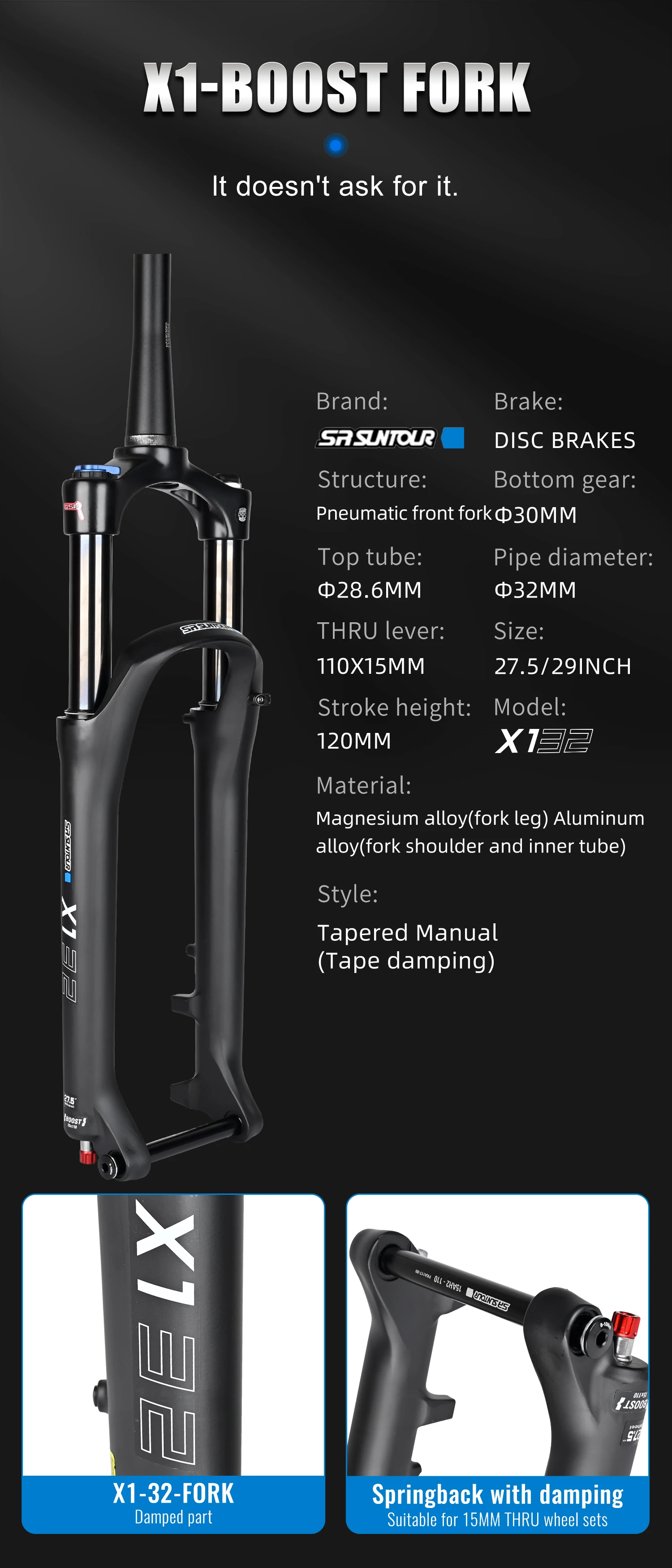 SR SUNTOUR X1 32mm Bicycle Suspension Straight Features:
