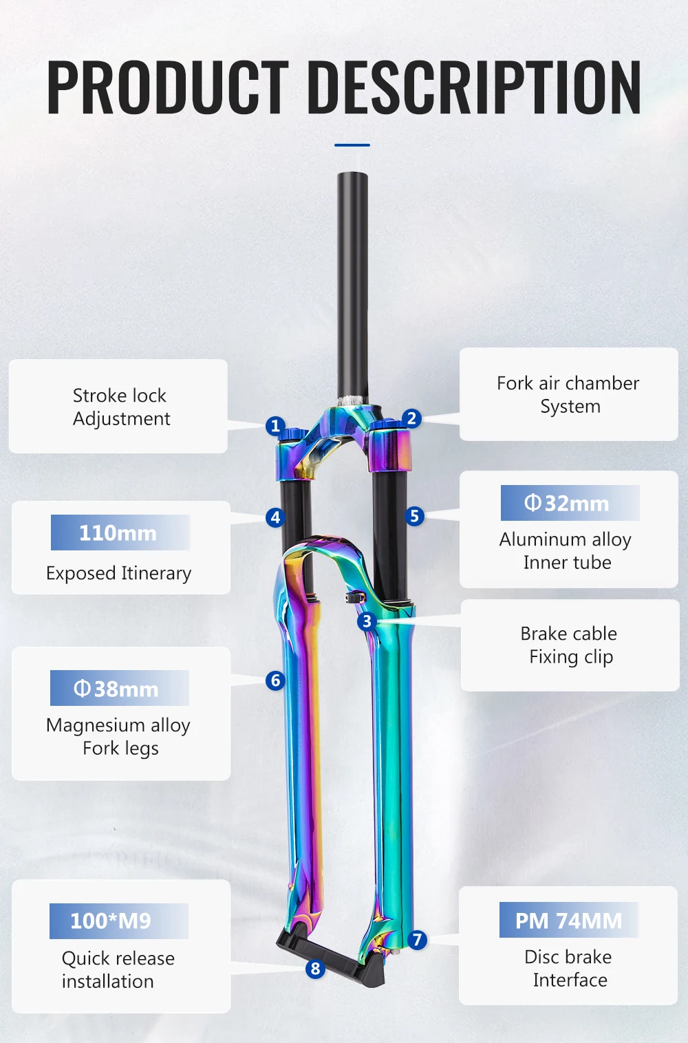 The smaller the air pressure is, the softer the front fork is, which is suitable for bumpy road sections; The higher the air pressure is, the harder the front fork is. It is suitable for riding on a level road