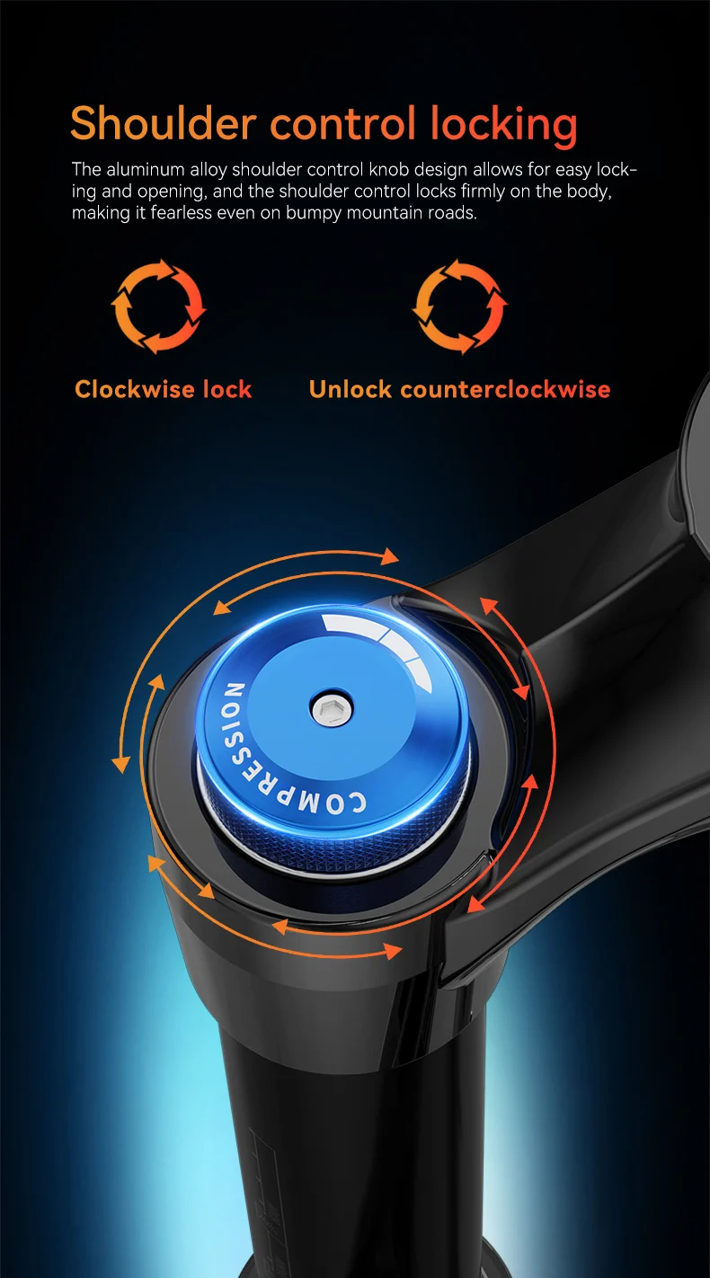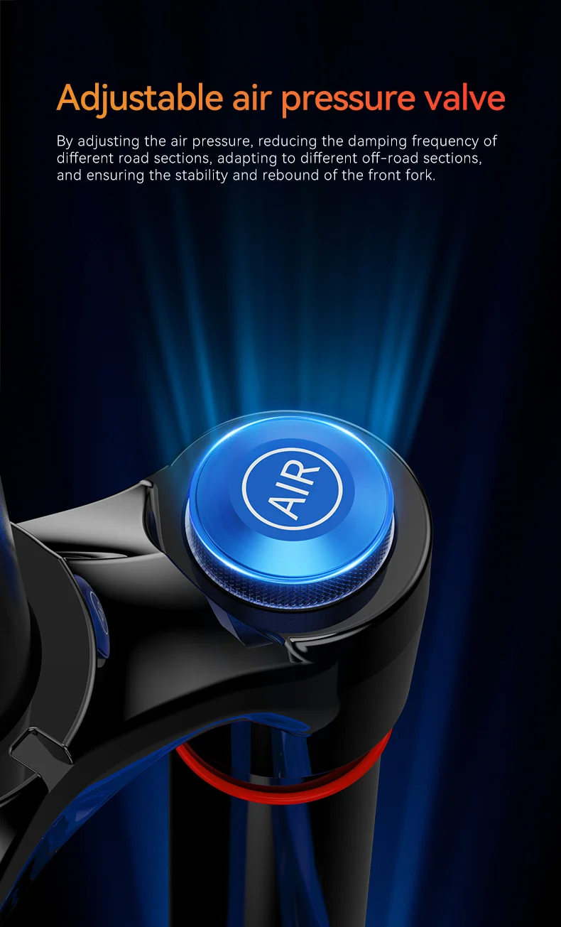 Warm tips: to adjust the air pressure, you need to use a special air cylinder for the front fork. If you don’t have a professional air cylinder, please don’t deflate at will.