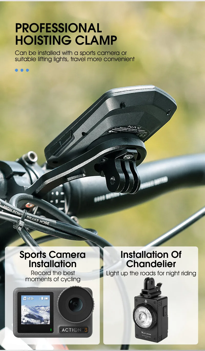 *4. Easy to install on the bike stem with installation adapters for ,Garmin, Bryton ,XOSS and Gopro Camera