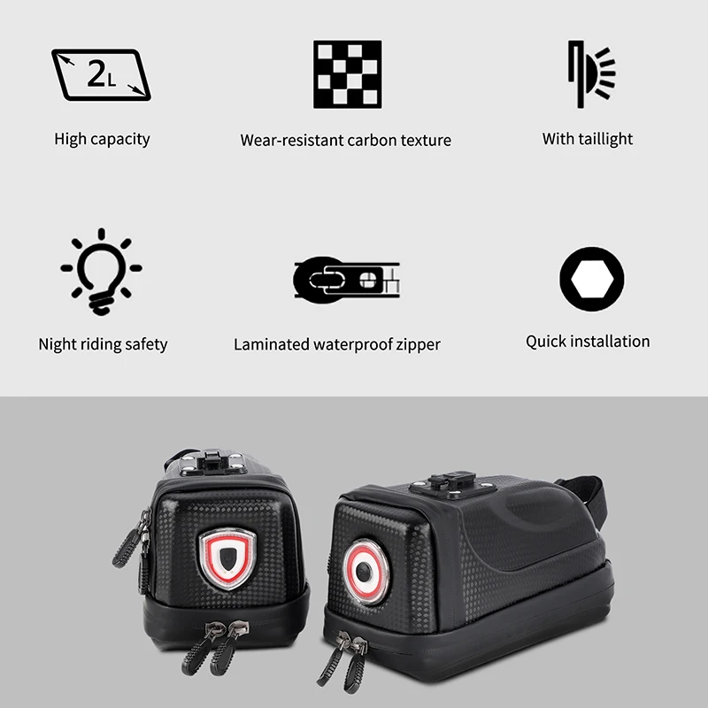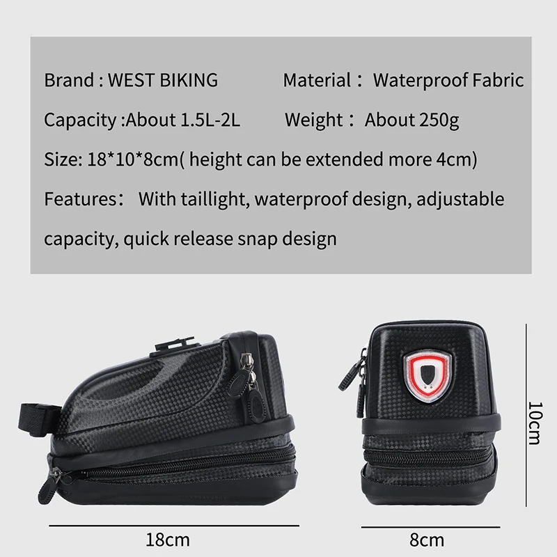 WEST BIKING Saddle Bag With Tail Light Waterproof Charcoal Hard Shell Bicycle Bag